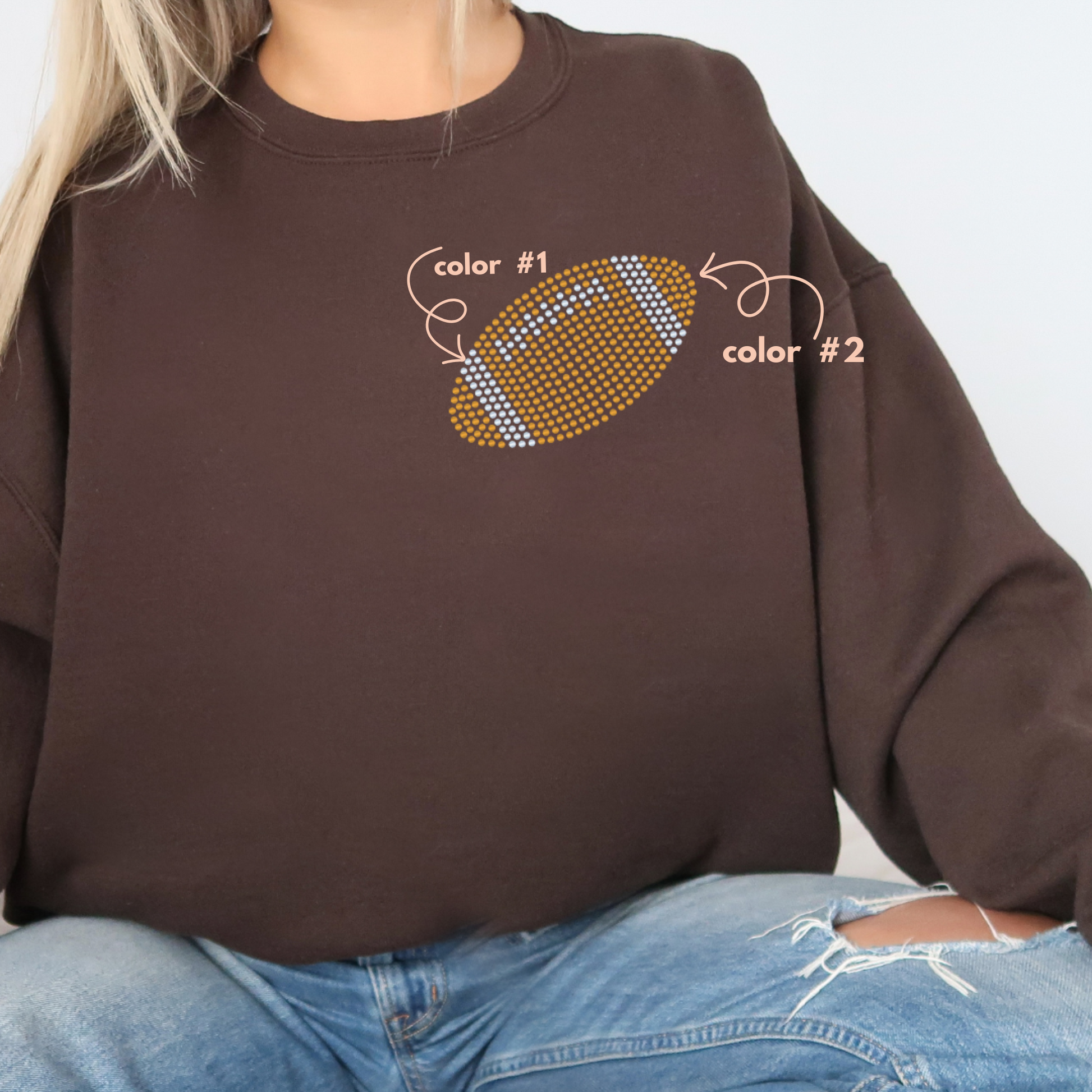 COLOR: This design will be created using the colors of your choice. Please select TWO spangle color choices from the dropdown menus. We highly recommend purchasing our color sample book, you can do so here: https://teesmeboutique.com/products/spangle-color-size-book